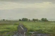 His personal goal was to show truth through his art. He struggled to have confidence in his abilities and grew worried over the artists' financial situation, but was encouraged by a letter from George Cannon to complete his mission. At the conclusion of his year abroad, Hafen traveled to the countryside before leaving Europe to sketch and paint nature scenes. Such experiences with plein air painting inspired him to devote himself to landscapes.[16][4] He fined-tuned his abilities by learning from landscape artist Arthur F. Mitchell and "returned home ... a confirmed landscapist in the tonalist tradition of the French Barbizon School."[7] George Q. Cannon offered the art missionaries the opportunity to stay longer than the originally agreed-upon duration of a year to continue at the Académie; Hafen, however, decided to stick to the plan and come home.[14] Hafen returned to Utah on August 17, 1891, before the rest of his comrades.[16]