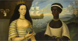 - ↑ Friar, Walter (1731) "Portrait of the Princess of Zanzibar with an African Attendant" (inscribed centre left: "JOHN HENDERSON of FORDELL Travelling in his youth thro several parts of Asia and Africa from y 1618 to y 1628 was delivered unto Slavery by a Barbari Prince in Zarquebar on the Cost of Africa where Princefs of that Countrie falling in love with him Even to Renoincing her Religion and Countrie contrived the mians of both their Escape and getting a board a ship trading up y Red Sea landed cam to Alexandre(a) where she died whofe Picture Mr Henderson cauised to take with her black Maid after their oun Country habett from y original Picture at oterston by W. Frier 1731"); "Portrait of the Princess of Zanzibar with an African Attendant".