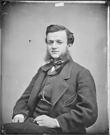 Puleston was born at Plasnewydd the son of John Puleston, a prosperous farmer of Llanfair Dyffryn Clwyd, and his wife Mary Jones. He was educated at Ruthin Grammar School and King's College London.[1] He went to America where he began by trying to establish a medical practice in New York. This was unsuccessful but he became acquainted with Governor Morgan and became involved in politics. He applied to Horace Greeley to become a political missionary for the Republican Party among Welsh miners in Pennsylvania. Turning to journalism, he edited a Welsh newspaper at Scranton, and purchased the Pittston Gazette. He was then editor of the Phoenixville Guardian for a short time, but departed from the town leaving debts. He invested in railroads and developed his political contacts. Puleston managed to obtain the role of secretary to a Peace Commission established prior to the American Civil War and achieved a national reputation, presenting reports to Abraham Lincoln and the House of Representatives. When the American Civil War broke out, Governor Curtin appointed Puleston as military agent for the state of Pennsylvania with the rank of Colonel.[2] He later drew a lucrative salary as secretary of Butterfield's Overland Express Company, and then became a broker on Wall Street with the firm Raymond, Puleston & Co. He was associated with Jay Cooke, McCullogh & Co, bankers and returned to London.[3]