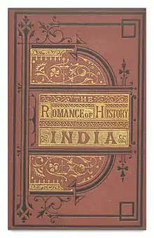 Caunter became best known for The Romance of History. India, which first appeared in three volumes in 1836. It was part of a series, The Romance of History, in which different writers offered tales of adventure and romance set – besides India – in England, France, Spain and Italy. Caunter's work consists of 15 romanticised retellings of episodes from the early Muslim conquests in the Indian subcontinent. Each story is preceded by a historical summary.[44][45] The book served as the basis for Aitihasik Upanyas (1857) by the Bengal writer Bhudev Mukhopadhyay, which consists of a story, 'Saphal svapna', based closely on Caunter's story 'The Traveller's Dream', as well as the first historical novel written in Bengal, Anguriya Binimay, based on Caunter's story 'The Mahratta Chief'.[46][47] Another Bengal writer, Krishna Kamal Bhattacharya, borrowed from Caunter's story 'The Pariah' for his novel Durakankher Britha Bhraman (1858).[48]