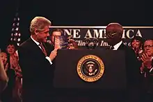 Franklin with President Bill Clinton at an event for the One America Initiative, 1998