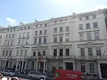Hubbard had Addington Manor, at Addington, Buckinghamshire, built to a design by Philip Charles Hardwick in 1856–7.[20] Its site was near the earlier Addington House, which had belonged to John Poulett son of Vere Poulett, but had fallen into disrepair. Hubbard bought the estate there in 1854. The landscape architect William Andrews Nesfield was brought into a planning process from about 1855. The new building was in a French style with a large conservatory.[21] Hubbard demolished part of the old house in 1857.[22] He retained his London house, 24 Prince's Gate, South Kensington opposite Hyde Park.[23]