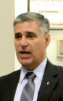 John J. Loughlin II (born March 3, 1959) is an American politician who is a Republican member of the Rhode Island House of Representatives, representing the 71st District from 2005 to 2010. During the 2009-2010 sessions he served on the House Committees on Labor and Veterans Affairs, and he also served as minority whip.[3] In June, 2010 he announced that he would not run for another term and that he would be running for U.S. Congress in the First Congressional seat being vacated by Patrick J. Kennedy. He lost in the 2010 General elections to outgoing Providence Mayor David Cicilline.[4]
