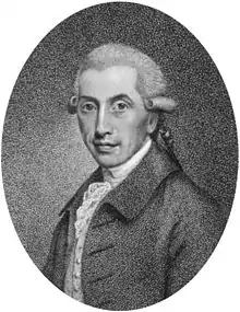 John Jebb was educated at Peterhouse, Cambridge, where he was elected fellow in 1761,[1] having previously been Second Wrangler at Cambridge in 1757.[2] He was a man of independent judgement, and he and his wife Ann warmly supported the movement of 1771 for abolishing university and clerical subscription to the Thirty-nine Articles.[3] In his lectures on the Greek New Testament he is said to have expressed Socinian views. In 1775 he resigned his Suffolk church livings, and two years afterwards graduated M.D. at St Andrews. He practised medicine in London and was elected a fellow of the Royal Society in 1779. He and Ann continued to be involved in political reform.
