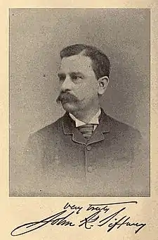 John Kerr Tiffany (February 9, 1843 – March 3, 1897), of St. Louis, Missouri, was one of the earliest American philatelists and was regarded in an 1890 poll of philatelists as the second most important person in philately, second only to the famous John Walter Scott.