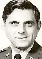Kizirian enlisted in the United States Navy near the end of World War II at the age of 17. In 1949, he applied for a transfer to the Army and became a sergeant. During the Korean War, he fought in the infantry in numerous front line battles, becoming a lieutenant and platoon leader. By the Vietnam War, Kizirian was an intelligence officer who frequently led troops in special combat missions. After 30 years of service, Kizirian retired from the military as a colonel in 1975, but returned to duty again to serve as the U.S. Defense Representative in Indonesia from 1980 to 1984. Believed to be one of the most decorated Armenian-Americans ever to serve, Kizirian earned the Distinguished Service Cross, Defense Distinguished Service Medal, Silver Star, Legion of Merit (4 awards), Distinguished Flying Cross, Soldier's Medal, Bronze Star with V Device (6 awards), the Purple Heart (3 awards), and the Air Medal (14 awards).[2][3] With a total of sixty-six decorations and awards, Kizirian is regarded as the most highly decorated Army Intelligence officer in United States history.[2]