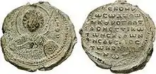 ![]() Lead seal of John Komnenos as kouropalates and Domestic of the Schools | |