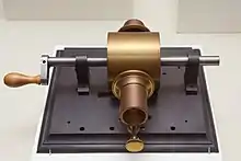 John Kruesi had been apprenticed as a locksmith[1] in Switzerland, and migrated to the United States where he settled in Newark, New Jersey. There, he met Thomas Edison. Edison employed him for his workshop in 1872.