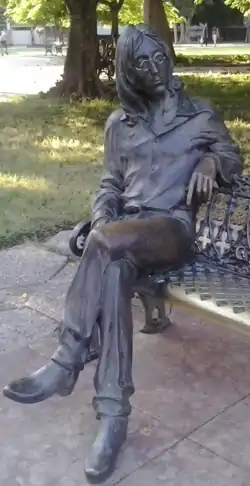 On one of the benches of the park, nearer the corner of streets 17th and 6th, there is a sculpture of the former Beatles member John Lennon, sculpted by Cuban artist José Villa Soberón, seated on the bench's right end. On a marble tile at the foot of the bench there is an inscription reading: "Dirás que soy un soñador pero no soy el único" John Lennon, which is a Spanish translation of the English lyrics, "You may say I'm a dreamer, but I'm not the only one," from the song "Imagine".