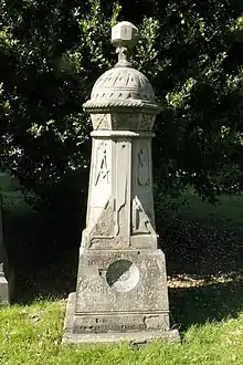 He is buried in Dean Cemetery. The grave lies in the first northern extension in a north-west section, set back but visible from the main east-west path. The grave is the first known grave (1884) to bear a photograph of the deceased. The glazed ceramic tile with this photo has been stolen.[3]