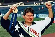 John Lindsay, OAM[1] (born 29 January 1970)[2] is an Australian Paralympic athlete from Melbourne.[2] He competed in the 1988 Seoul games in distances ranging from 100 m to 800 m, but did not win any medals.[3] At the 1992 Barcelona Games, he won a gold medal in the Men's 200 m TW3 event, for which he received a Medal of the Order of Australia,[1] a silver medal in the Men's 100 m TW3 event and a bronze medal in the Men's 400 m TW3 event.[3] That year, he had a Victorian Institute of Sport scholarship.[4] He was also working as a fitness instructor in 1992, held world records in the 100 m and 200 m events, and was ranked 6th in the world in the 400 m.[4] He won a gold medal in the men's athletics 100 m T52 event at the 1996 Summer Paralympics with a time of 15.22,[5] a silver medal in the 200 m T52 event with a time of 27.38,[6] and a bronze medal in the 400 m T52 event with a time of 52.93.[7] At the 2000 Sydney Games, he won a gold medal in the Men's 100 m T53 event, a silver medal as part of the Men's 4x100 m Relay T54 team, and a bronze medal in the Men's 200 m T53 event;[3] he was also part of the Men's 4x400 m Relay T54 team, which was the only one to qualify in its heat, but it did not make it to the finals.[8] At the 2004 Athens Games, he came seventh in the first round of the Men's 100 m T53 event[9] and sixth in the third round of the Men's 200 m T53 event.[10] He was an Australian Institute of Sport scholarship holder in 1995 and 2000.[11]