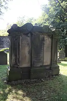 He is buried with his grandparents and family in St Cuthbert's Churchyard at the west end of Princes Street Gardens. The grave lies in the raised south-west section.