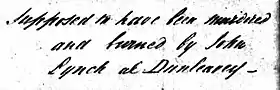 - ↑ "Victims of John Lynch Remembered" (PDF). Berrima District Historical and Family History Society Newsletter. No. 520. Wingecarribee Shire, Southern Highlands, NSW: Berrima District Historical and Family History Society. September 2019. Retrieved 28 September 2021.