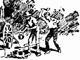![]() An artist's impression of the imminent murder of Mary Macnamara by John Lynch in August 1841 at Wombat Brush, near Berrima [published in the Truth newspaper (Sydney), 16 October 1949]. | |