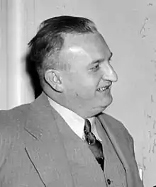 - ↑ "Sculptor Gutzon Borglum (center left) and composer Walter Damrosch (center right) discussing their opposition to the creation of a Federal Bureau of Fine Arts with Senator Claude Pepper (left) and Senator Allen J. Ellender (right)". Library of Congress.