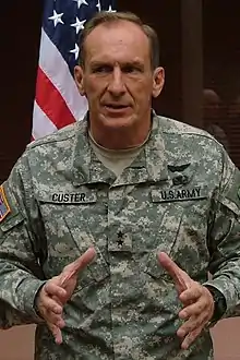 In 1978 he was commissioned a Second Lieutenant in the Military Intelligence Corps. General Custer has commanded at every level to include Company, Battalion and Brigade, and served as the primary Intelligence Staff Officer (S2/G2/J2) at Battalion, Brigade, Division, Corps and Joint Command levels. His previous assignments include Joint Chiefs of Staff (J5, Nuclear Forces Analysis) as a Space Architecture Planner, and duty as an Intelligence Officer and Nuclear Weapons Targeting Officer aboard the Supreme Allied Commander Europe (SACEUR) Airborne Command Post (Silk Purse Control Group) Royal Air Force Mildenhall, England. He commanded a surveillance company on the Demilitarized Zone, Republic of Korea, a signals intelligence battalion at the National Security Agency (NSA), Fort Meade, Maryland, and the 201st Military Intelligence Brigade, First US Corps, Fort Lewis, Washington. General Custer has served as a Company Grade Assignments Officer at Military Intelligence Branch, US Army Military Personnel Center, Alexandria VA and as Assistant Commandant, United States Army Intelligence Center and School, Fort Huachuca, Arizona. Custer was married to the former Audrey Schoenfeld and has one daughter. He was assigned as the Director of Intelligence (J2) Headquarters on Fort Huachuca, Arizona until departure in 2010. Custer retired in 2011 and worked for EMC2 and DELL.
