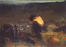 His subjects in oil include animals, figures, and landscapes, and are distinguished by massive, simple treatment, and a strongly imaginative element. Noted examples include: