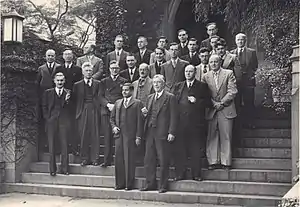 The Royal Society organised a three-week Empire Scientific Conference to be held in June–July 1946 with conferences in London, Oxford and Cambridge. Two further weeks were then arranged for more official government decision making. The delegates to the Royal Society Conference included UK (38), Canada (15), Australia (9), India (14), New Zealand (4), South Africa (7), West Indies (4), Southern Rhodesia (5) as well as Eire & East Africa. The 9 Australian delegates were led by David Rivett FRS of CSIR. & included JPVM[8] who did not deliver any papers but did propose that a Secretariat be formed which would prepare the ground for the first meeting of a Commonwealth Standards body. The Conference was opened by H M The King on Monday 17 June at 11.00 am at the Beveridge Hall of the Senate House, University of London. The UK delegates, mainly FRS, included E Appleton, P M S Blackett, J Chadwick, Lord Cherwell, J D Cockcroft, C Darwin,& Henry Tizard.