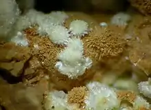 In recognition of his contributions to geochemistry, a new mineral, meurigite, was named after him in 1995 by the International Mineralogical Association.[48][49] A hydrated potassium iron phosphate, meurigite is described as "tabular, elongated crystals forming spherical and hemispherical clusters and drusy coatings. The colour ranges from creamy white to pale yellow and yellowish brown."[10] It is found in only a few locations worldwide, of which the designated type locality is the Santa Rita mine in New Mexico.[10]