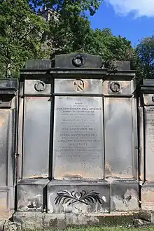 He died from the effects of an accident (he fell from his horse) 16 October 1862. He is buried with his family in the southern section of St Cuthberts Churchyard in Edinburgh.