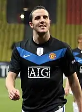 O'Shea captained United for the second time against Birmingham City in their first game of the 2009–10 Premier League season.[22] He celebrated his 350th appearance fittingly by scoring his first league goal in over two years against Stoke City on 29 September 2009, firing in a header in a 2–0 win.[23] He captained the team for the third time in the second leg of United's 2010–11 UEFA Champions League semi-final victory over Schalke 04.[24] O'Shea made 393 total appearances for Manchester United.[25]