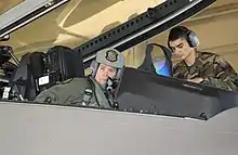 Air Force Chief of Staff General John P. Jumper flies an F-22 Raptor.