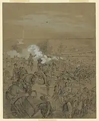 An officer directing his troops into battle in the American Civil War by John R. Chapin