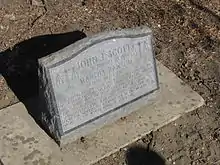 Ritchie also donated property as a free cemetery where those too poor to purchase lots at the Topeka Cemetery could bury their dead loved ones. It is believed that there are around 100 graves within the cemetery, most unmarked, which is located at 27th and Boswell Ave. in Topeka. His wife, Mary Jane, and their young daughter were both originally buried there, however upon John Ritchie's death at age 70, his son Hale had his father buried in the Topeka Cemetery and his mother and sister's remains moved there as well.[2]