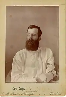John Sontag came to California to work for the Southern Pacific Transportation Company. While coupling rail cars in the company yard in Fresno his leg was crushed; he accused Southern Pacific of failure to care for his on-the-job wounds and their refusal to rehire him after he had healed.[2] In 1889, John Sontag was working on the farm of Canadian Christopher "Chris" Evans near Visalia in Tulare County. Evans was outraged by Southern Pacific's high freight rates and the pressuring of landowners to sell their property to the railroad. This seizure of particularly valuable wheat-farming land is known as the Mussel Slough Tragedy.[4] Later Sontag and Evans went on to lease a livery stable in Modesto, but after a year the structure burned and the horses were lost in the fire. At some point Sontag became engaged to Eva, daughter of Evans.