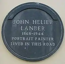 John St Helier Lander (19 October 1868 in Jersey – 12 February 1944 in Witley, Surrey) was a noted portrait painter.[1] Born John Helier Lander, he added the St. to acknowledge his birthplace of Saint Helier in the Channel Islands. He was given his first paint box by Lillie Langtry, the famous beauty, actress and mistress of the Prince of Wales, later to become Edward VII. He studied at Calderon's School.[2]