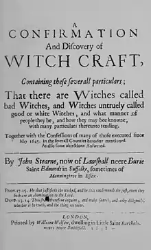 - ↑ A detailed account of the two men's activities can be found in Malcolm Gaskill's Witchfinders: A Seventeenth Century English Tragedy (Harvard, 2005).