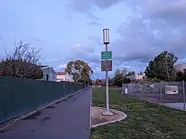 It is 80 feet (24 m) wide and runs east to west for 2.7 miles (4.3 km) above the Hetch Hetchy Aqueduct, linking Orchard Gardens Park on Sunnyvale's west side and Fairwood Park on the Santa Clara border in Sunnyvale.