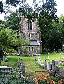 Wanamaker died on December 12, 1922.[26] His funeral was on December 14, 1922, with a service at the Bethany Presbyterian Church.[27] He was interred in the Wanamaker family tomb in the churchyard of the Church of St. James the Less in Philadelphia.