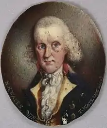 White was born in the townland of Drumaran, near Belcoo, in County Fermanagh in Ulster, the northern province in Ireland, about 1756,[1][2][3][4] and not, as stated in the Dictionary of Australian Biography[5] and the Australian Dictionary of Biography,[6] in Sussex, England. On 18 June 1778 John White qualified as a surgeon's mate, first rate, following examination at the Company of Surgeons in London. He entered the Royal Navy on 26 June 1778 as surgeon's mate aboard HMS Wasp. He was promoted surgeon in 1780, serving aboard HMS Irresistible until 1786 when Sir Andrew Hamond recommended him as principal naval surgeon for the voyage of the First Fleet to Australia.[7]