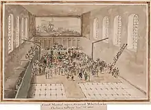 A cartoon showing Whitelocke's demotion after the court martial. Two child drummers strip him of his military garb and break his sword as a devil offers him a weapon to commit suicide. - This article incorporates text from a publication now in the public domain: Chisholm, Hugh, ed. (1911). "Whitelocke, Sir James". Encyclopædia Britannica. Vol. 28 (11th ed.). Cambridge University Press.