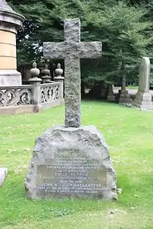 He is buried with his wife, Emily Rosa Mathew (d.1914) in Dean Cemetery in the west of Edinburgh. The grave stands just north of the Buchanan monument in the south-west section.