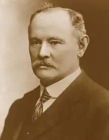 John's first experience of local government was his election to Karioi Highway Board in 1876.[61] The family moved to Hamilton in 1905,[1] where John and Manawa lived in a large villa, Muriaroha, on the corner of Lake Rd and Tainui St, in Frankton borough. He got permission for a boathouse in 1906.[62] He was on Frankton Town Board from 1912 and then on its Borough Council.[26] In the words of Councillor John Fow, John William Ellis "was one of those who made the Empire great".[4] During the war Mr Ellis gave generously to patriotic movements, including a Returned Soldiers' Club, resulting in his Order of the British Empire award.[1] In March 1917 he accepted nomination as mayor[63] and on 4 May was elected Mayor of Hamilton,[64] but died after only 15 months in office.[9] Ellis Street was named after J.W. Ellis.[65]