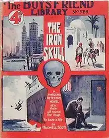 After the birth of his son, Maxwell Staniforth in 1893, Staniforth turned to writing to supplement his income.[8] On May 19, 1894, his first adventure tale, The Phantom-Dwarf; or, The Mystery of the Isle of Life, appeared in the Union Jack No. 4 under the pen-name Maxwell Scott. The Sister of Death, and The "Avenger’s" Quest, followed in Union Jack in July and August 1894. On September 19, the detective tale A Dead Man's Secret appeared in The Halfpenny Marvel No. 46. It starred detective Nelson Lee, the character that would become his most popular creation.