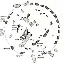 Wood also left us the most important plan of Stonehenge ever made; his survey, carried out in 1740 and published in his Choir Gaure, Vulgarly Called Stonehenge, on Salisbury Plain (1747),[33] was annotated with hundreds of measurements, which he resolved on the ground to one half, sometimes even one quarter, of an inch.[34][35] This work has been largely overlooked, partly due to criticisms made by the antiquarian William Stukeley.[36] Wood's interpretation of the monument as a place of pagan ritual was vehemently attacked by Stukeley who saw the druids not as pagans, but as biblical patriarchs.[37] Stukely also failed to see the significance of recording the stones in such detail. However, using Wood's original dimensions it has been possible to re-draw his work on a computer and compare the record with the modern plan of Stonehenge. His survey has immense archaeological value, for he recorded the stones fifty years before the collapse of the western trilithon (which fell in 1797 and was not restored until 1958).[38]