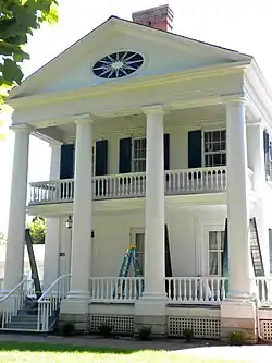 Wood's 14-room mansion was built by John Cleaveland and endured a move from its original site to its current location, about a block east, so Wood could build an even larger mansion. The Greek Revival building was added to the National Register of Historic Places on April 17, 1970, and in 2007 was named by the Association of Independent Architects one of Illinois' 150 most important architectural structures. The John Wood Mansion features four large Doric columns, which Wood himself turned at a lathe he built for that purpose, four large chimneys and many ornate details inside and out. A great many original Wood family and period furnishings are displayed throughout the mansion. Today it is owned and operated by the Historical Society of Quincy and Adams County.[2][1]