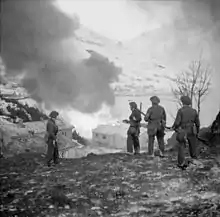 Woollett was deployed to France with the British Expeditionary Force at the start of the Second World War. Serving with 23 Field Company as part of the 1st Infantry Division he was evacuated from Dunkirk in May/June 1940.[1][3] Woollett's unit did not see active service in the following months and he volunteered for commando service. He served with No. 6 Commando and led the engineer (demolition) element of Operation Archery, a 27 December 1941 raid on Vågsøy in German-occupied Norway.[1][3] Earlier that year he had married Joan Stranks and the couple had three sons together.[1]