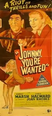 Johnny, You're Wanted is a 1956 British crime second feature[1] film, directed by Vernon Sewell and starring John Slater and Alfred Marks.[2] It was based on the 1953 BBC television series of the same name which also starred Slater. The film features strongwoman Joan Rhodes performing her stage act.
