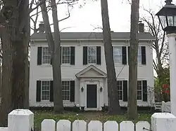 Johnson–Denny House, also known as the Johnson-Manfredi House, is a historic home located at Indianapolis, Marion County, Indiana. It was built in 1862, and is a two-story, five-bay, T-shaped, frame dwelling with Italianate style design elements. It has a bracketed gable roof and a two-story rear addition. It features a vestibule added in 1920. Also on the property is a contributing 1+12-story garage, originally built as a carriage house. It was originally built by Oliver Johnson, noted for the Oliver Johnson's Woods Historic District.[2]:2