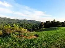 Situated entirely within the Blue Ridge Mountains,[8] Johnson County is relatively rugged and hilly. The county's boundary with Sullivan County to the northwest is defined as the ridgeline of Holston Mountain, while the Iron Mountains provide the county's boundary with Carter County to the southwest. Snake Mountain, at 5,574 feet (1,699 m), is the county's highest point.[1]