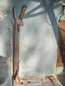 Johnson bar is the term for several different hand-operated levers used in vehicles. Their distinguishing feature is a positive latch, typically spring-loaded, to hold the lever in a selected position, capable of being operated with one hand. Some Johnson bars have a fully ratcheting mechanism, some just a series of detents, and others yet simply engaged and disengaged positions.