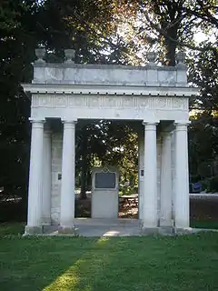 Johnston Green is a place where people get together, but it also holds some of the University's historical landmarks. Old Jeremiah, or the cannon as we know it today, was once situated on Johnston Green during the 1970s but has since been moved back to its original location, closer to the University Centre, where it sits today in the middle of Winegard Walk. Another landmark that sits on Johnston Green is The Portico.[14] The Portico has been around since 1874 when the first students walked through it as it was the door to the house of Frederick W. Stone.[14] Eventually the University purchased the building to use it as a lecture hall and a residence building. The building was torn down to make way for Johnston Hall, and The Portico was saved and moved onto Johnston Green as a commemorative item[14] Guelph alumni certainly enjoy the sentimentality of The Portico. This landmark is also a popular place for students to take their graduation photos.