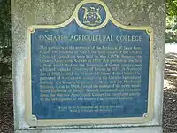 Johnston Hall at the University of Guelph was named after William Johnston (1848–1885) who was the founder and first principal of the Ontario Agricultural College from 1874 to 1879. Johnston Hall was built in 1931 as a student residence and home of administrative offices.[1] Johnston Hall is the second building that opened in 1932 as the first building, the Italianate-style Moreton Lodge, was demolished in 1928 - this is represented by the portico which resides on Johnston Green. The Portico was the front entrance to the F.W. Stone Farmhouse which was part of old Johnston Hall.[2] During the Second World War, both Johnston Hall and Johnston Green served as headquarters for the Royal Canadian Air Force. Today, Johnston Hall is a symbol and landmark of the agricultural college and the University of Guelph.[3]