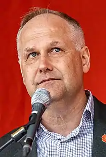 Jonas Sjöstedt (born 25 December 1964) is a Swedish politician who was the chairman of the Left Party from 2012 until 2020, and a former metalworker.[1][2] He is also a member of the Swedish parliament since 2010.