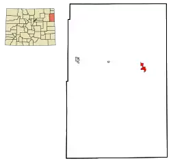 The Jones-Miller site is located in Yuma County, Colorado, 10 miles from the town of Laird in the Republican River basin.[3] The grassland site is located at a 18 inches (46 cm) deep draw that drains into an Arikaree River tributary.[4]