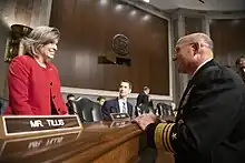 In 2017, Ernst asked Secretary of Defense nominee James Mattis whether he would pledge to cut wasteful spending and stop sexual assault in the military, to which Mattis agreed.[84]